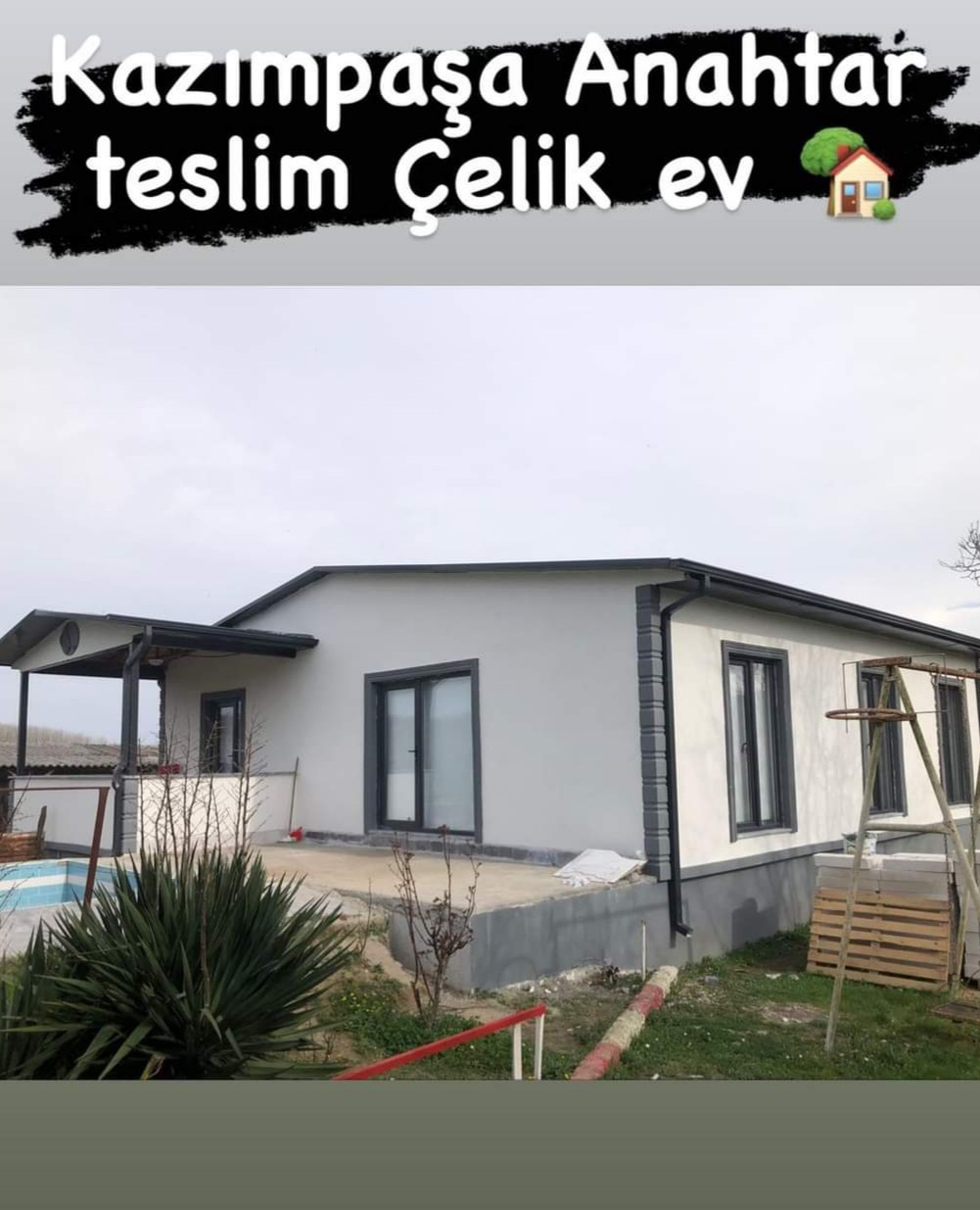 115 m2 Çelik konstrüksiyon pre ytongev yerden ısıtmalı 3+1 Ebeviyen banyolu